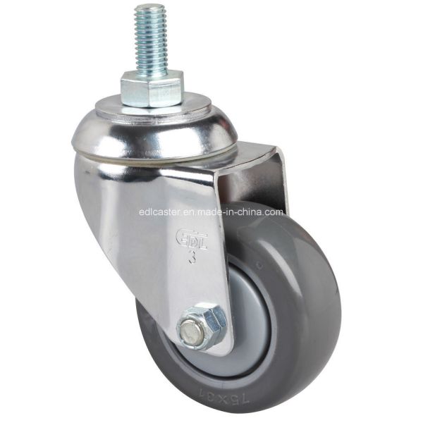 Chrome 3" 130kg Threaded Swivel Caster Color Grey Application Caster Wheel Material PU Images